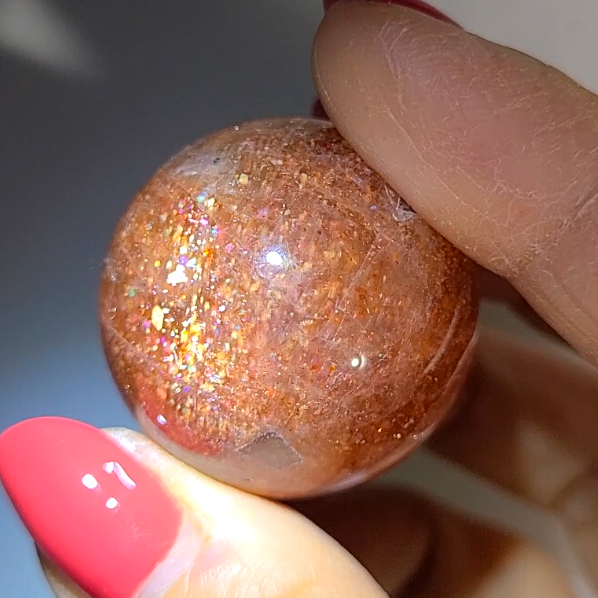 Arusha sunstone with rainbow glitter and star flash - SM49 ✨ Origin: Arusha, Tanzania ✨ Measurements: 29.7mm across ✨ Weight: 35.4g ✨ FREE WORLDWIDE SHIPPING! ✈️ Arusha sunstone carries metaphysical properties that can bring joy, vitality, and abundance into your life. This crystal radiates a warm and uplifting energy, promoting optimism and a positive outlook. Arusha sunstone enhances creativity, self-expression, and personal power. It also attracts abundance and success in various areas of life. Embrace its energy to ignite your inner light, embrace joy, and manifest abundance in all aspects of your life. #FeatherlightDustSunMoonstone #FeatherlightDust #moonstone #sunmoonstone #sunstonemoonstone #blueflash #blueflashmoonstone #whitemoonstone #sunstone #latticesunstone #rainbowsunstone #bifrost #rainbowbridge #rainbowconfetti #rainbowconfettisunstone #rainbowbifrost #sunstonepalm #moonstonepalm #arusha #arushasunstone