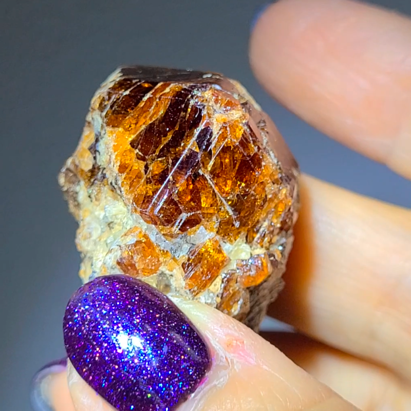 A: The golden formations add solar energy to garnet's fire element, creating a powerful combination for confidence, success, and manifestation work.