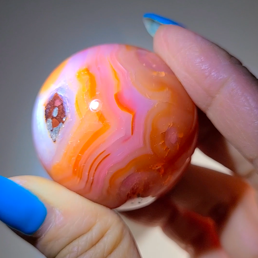 Carnelian Sphere with Orbs and Pink Red Banding - Brazilian Sacred Geometry Crystal