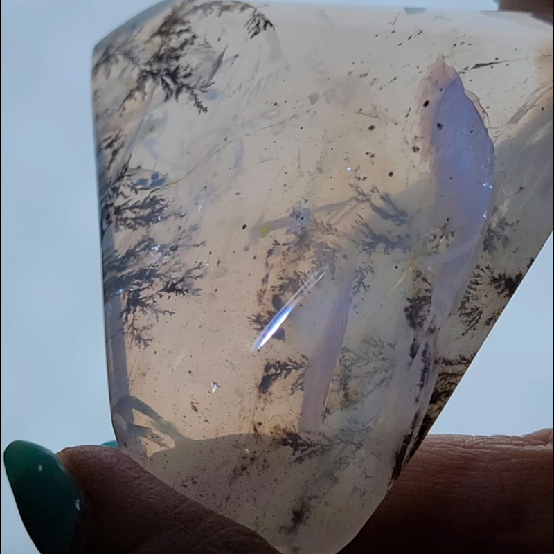 Dendritic in smoky quartz slab. ✨ Brazil ✨ Measurements: 84.1mm x 62.1mm x 18.5mm ✨ Weight: 132g ✨ FREE SHIPPING! Dendritic in smoky quartz carries metaphysical properties that can connect you with the wisdom of nature. The dendritic inclusions resemble tree-like patterns, promoting growth, grounding, and connection with the natural world. This crystal combination enhances spiritual communication and intuition, allowing you to receive guidance from higher realms. Dendritic in smoky quartz also assists in releasing old patterns and fostering emotional healing. Embrace its energy to align with the cycles of nature, gain spiritual insights, and experience personal growth. DN4 #FeatherlightDustDendritic #FeatherlightdustSmokyQuartz in m #FeatherlightDust #chry0santhemumquartz #needlequartz #pineapplequartz #flowerquartz #blueangelfeather #blueangelfeatherquartz #blueneedle #blueneedlequartz #rainbowquartz #hematite #yellowhematite #redhematite #girasol #girasolquartz #rainbowgirasol #rainbowgirasolquartz #hematitequartz #dendritic #dendrites #dendriticquartz #diamondchrysanthemum #diamondflowerquartz