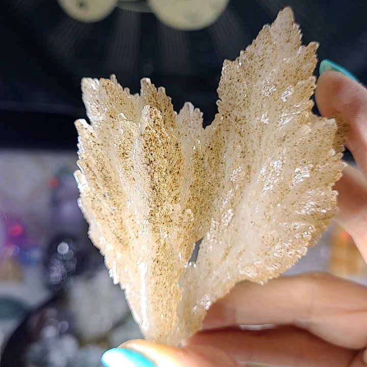 Golden feather calcite cluster that sparkles all over. ✨ Origin: China ✨ Measurements: 95mm x 74mm x 40mm ✨ Weight: 110.5g ✨ FREE WORLDWIDE SHIPPING! ✈️ Feather calcite radiates a potent and assertive energy, awakening your clarity, purification, and spiritual growth. It activates and cleanses your energy field, removing stagnant energy and promoting positive transformation. Feather calcite enhances mental clarity and focus, aiding in decision-making and problem-solving. It facilitates spiritual development and connection to higher realms, fostering inner peace and harmony. This crystal also promotes a sense of lightness and upliftment, empowering you to soar to new heights. #featherlightdustcalcite #FeatherlightDustClusters #FeatherlightDust #calcite #feathercalcite #feathercalcitespecimen #feathercalcitecluster #goldenfeathercalcite #goldfeathercalcite CC35 RW0067