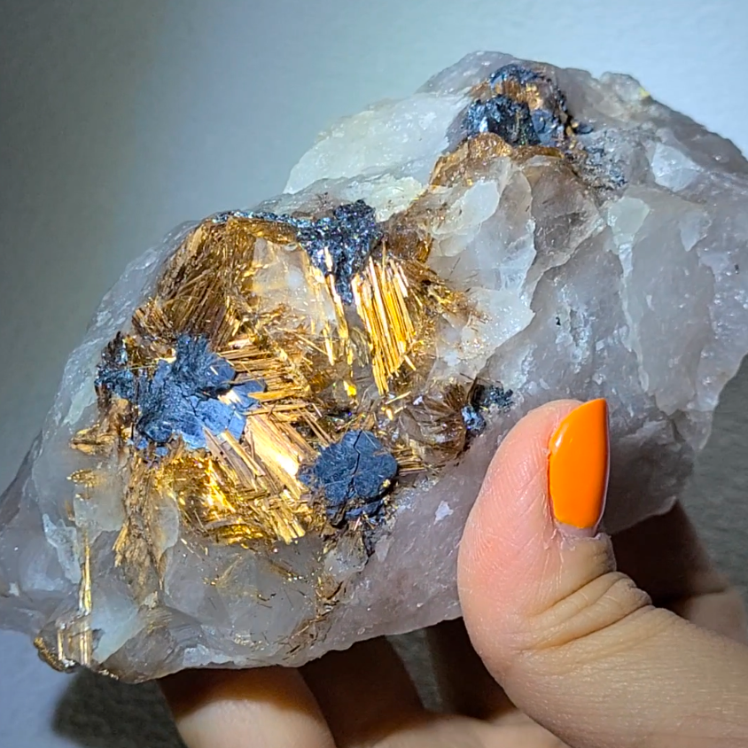 Golden titanium exposed starburst rutiles with black hematite in quartz. ✨ Origin: Brazil ✨ Measurements: 121mm x 72mm x 55mm ✨ Weight: 467.4g ✨ FREE WORLDWIDE SHIPPING! ✈️ Golden titanium exposed starburst rutiles and black hematite in quartz is a crystal of empowerment. The golden rutiles radiate positive energy, promoting self-confidence and manifestation of your desires. The black hematite grounds and shields you from negative energies. Together with the quartz, they amplify your intentions, enhance intuition, and bring balance to your mind, body, and spirit. Their transformative energy will unlock your true potential. RT1419 #FeatherlightDustRutiles #FeatherlightDust #FeatherlightDustHematite #rutilatedquartz #goldenrutile #rainbowrutile #copperrutilatedquartz #copperrutile #copperrutile #goldenrutiles #fireworksrutile #goldentitaniumrutiles #rutileinquartz #rutilequartz #rainbowrutiles #rainbowrutilated #flowerrutile #flowerbudrutile #flowerrutilequartz #exposedrutile #rutilehematite #starburstrutiles #starburstrutile #pinkrutiles #hematite