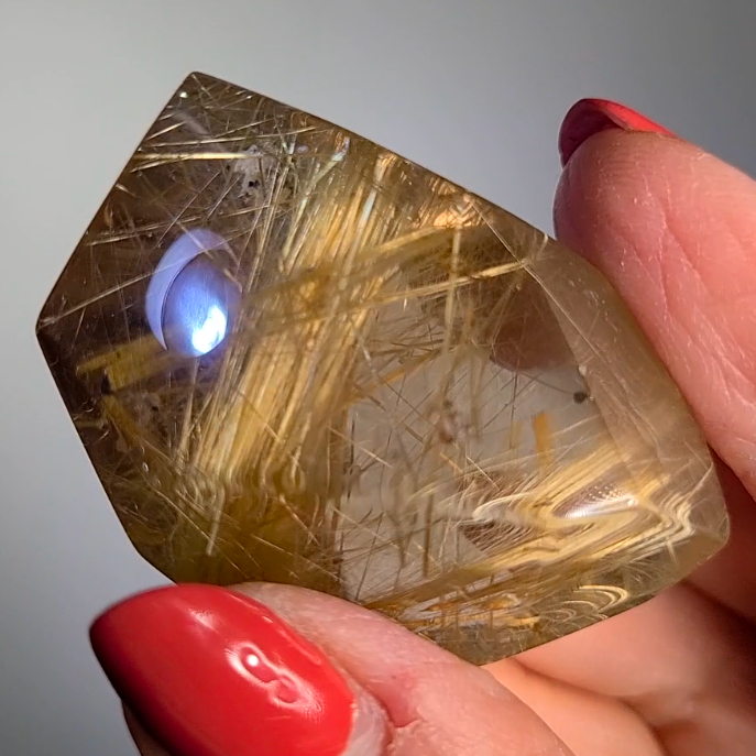 Golden starburst titanium rutilated quartz freeform. ✨ Brazil ✨ Measurements: 46.9mm x 32mm x 25mm ✨ Weight: 41g ✨ FREE SHIPPING! Golden titanium starburst rutilated quartz carries metaphysical properties that can amplify your energy, manifestation abilities, and spiritual connection. This crystal features golden rutile needle inclusions in a starburst pattern, symbolizing divine guidance and abundance. Golden titanium starburst rutilated quartz enhances your intentions, promotes clarity, and accelerates manifestation. Embrace its energy to ignite your desires, deepen your spiritual connection, and experience a sense of divine guidance and abundance on your journey. RT76 #FeatherlightDustRutiles #rutiles #FeatherlightDust #rutilated #rutilatedquartz #goldenrutile #rainbowrutile #stoneinstone #copperrutilatedquartz #copperrutile #copperrutiles #silverrutiles #silverrutile #goldenrutiles #fireworksrutile #goldentitaniumrutiles #rutileinquartz #rutilequartz #rainbowrutiles #rainbowrutilated