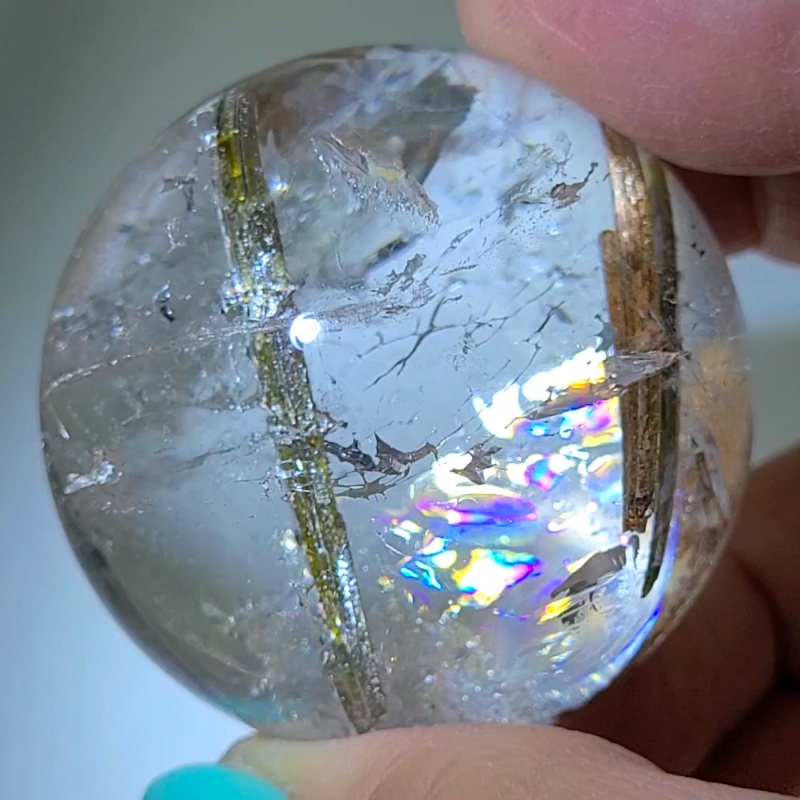 Green Tourmaline in Quartz Sphere with Rainbows - Heart Healing, Abundance & Spiritual Growth Crystal