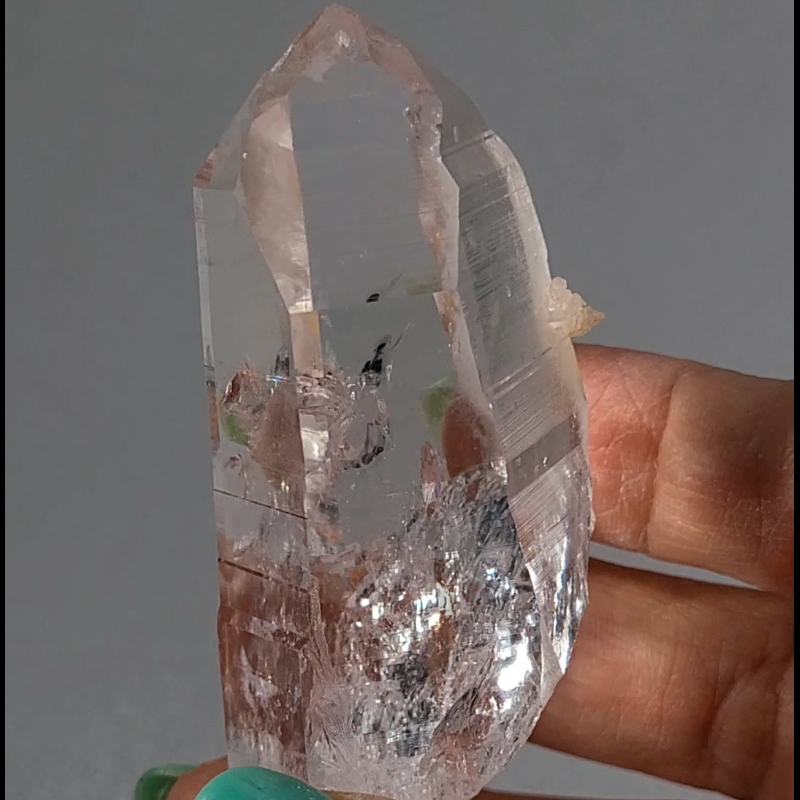 The horizontal ascension lines feel like gentle ridges when you run your finger along the crystal faces. This tactile feedback helps anchor consciousness during meditation while activating the encoded information within each striation.