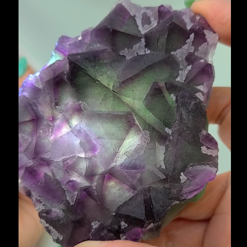 Octahedral fluorite cluster with calcite frosting, purple-edged phantom mountains, hints of blue. A floater piece with no matrix rock. ✨ China ✨ Measurements: 102mm x 80mm x 24mm ✨ Weight: 211g ✨ FREE SHIPPING! Purple octahedral fluorite holds the energy of spiritual guidance and psychic development. This crystal opens your third eye chakra, enhancing intuition and inner vision. Purple octahedral fluorite also promotes spiritual protection and purification, clearing negative energies from your energetic field. It aids in accessing higher states of consciousness and deepening your spiritual connection. Purple octahedral fluorite is a powerful tool for spiritual exploration and expanding your psychic abilities. FL281 #FeatherlightDustFluorite #FeatherlightDustClusters #FeatherlightDust #fluorite #fluoritecubes #cubicfluorite #cubefluorite #fluoritecube #fluoritedruzy #yindufluorite #yindumine #windowfluorite #cubefluorite #phantomfluorite #purplefluorite #bluefluorite #greenfluorite #sugarfluorite #fluoritedendrites #fluoritesphere #rainbowfluorite #dendriticfluorite #fluoriteenhydro #enhydrofluorite #phantomfluorite #fluoritewithphantom #octahedral #octahedralfluorite