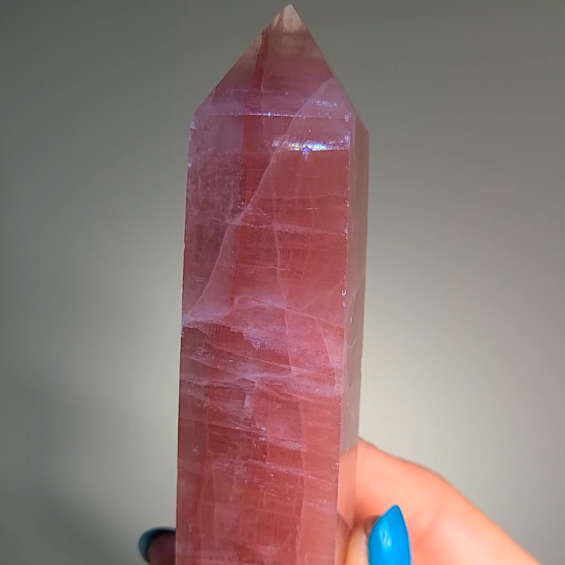 Tower formations create focused energy columns that direct calcite's healing properties directly to the heart and throat chakras while amplifying emotional healing throughout your entire energy field. The soft pink coloration specifically targets heart chakra healing while enhancing authentic communication abilities.