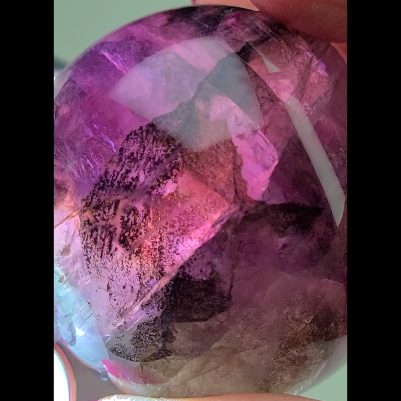 Magenta pink and purple fluorite sphere with red phantoms, dendritic, and stunning rainbows. ✨ Origin: China ✨ Measurements: 43.5mm across ✨ Weight: 137.2g ✨ FREE WORLDWIDE SHIPPING! ✈️ Magenta fluorite with dendritic enhances your spiritual growth, intuition, and inner vision. The magenta hue promotes emotional healing and unconditional love, while the dendritic patterns enhances your connection with nature and grounding energy. This crystal will invite a harmonious blend of spiritual expansion and emotional healing, nurturing your soul and guiding your path of self-discovery. FL14 #FeatherlightDustFluorite #FeatherlightDustClusters #FeatherlightDust #fluorite #fluoritecubes #cubicfluorite #cubefluorite #fluoritecube #fluoritedruzy #yindufluorite #yindumine #windowfluorite #cubefluorite #phantomfluorite #purplefluorite #bluefluorite #greenfluorite #sugarfluorite #fluoritedendrites #fluoritesphere #rainbowfluorite #dendriticfluorite #fluoriteenhydro #enhydrofluorite #phantomfluorite #fluoritewithphantom