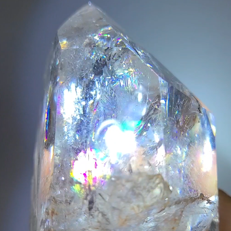 The rainbow effect isn't a coating or treatment—it's a natural optical phenomenon created by the crystal's internal structure refracting light, making the healing properties authentic and permanent.