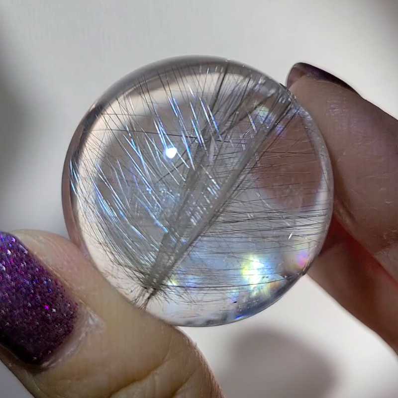 Rainbow fireworks silver rutilated quartz sphere with the rutiles growing out of a spine, like a feather and a fish bone. ✨ Brazil ✨ Measurement: 31.7mm across ✨ Weight: 44g ✨ FREE SHIPPING! Silver rutiles enhances spiritual growth, intuition, and psychic abilities. The silver rutiles act as energetic antennas, connecting with higher realms and facilitating communication with spirit guides. Silver rutilated quartz is also associated with amplifying intention-setting and manifestation efforts. It brings clarity and focus, as well as provide protection against negative energies. It promotes emotional healing and balance, fostering a sense of inner peace and harmony. RT121 #FeatherlightDustRutiles #FeatherlightDust #FeatherlightDustCollectors #RutilatedQuartz #SilverRutileQuartz #SilverRtiles #SilverRutilatedQuartz #Rainbowsilverrutiles #rainbowfireworksrutiles #rainbowsilverfireworksrutiles #silverfireworksrutiles