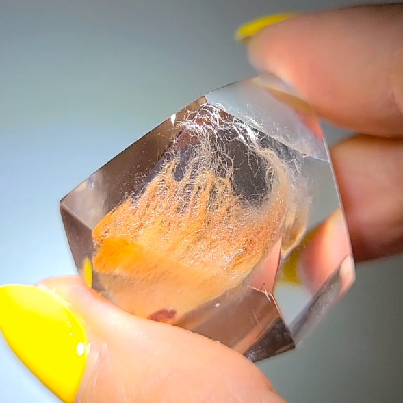Red amphibole rabbit hair quartz with glass-like clarity - AB11