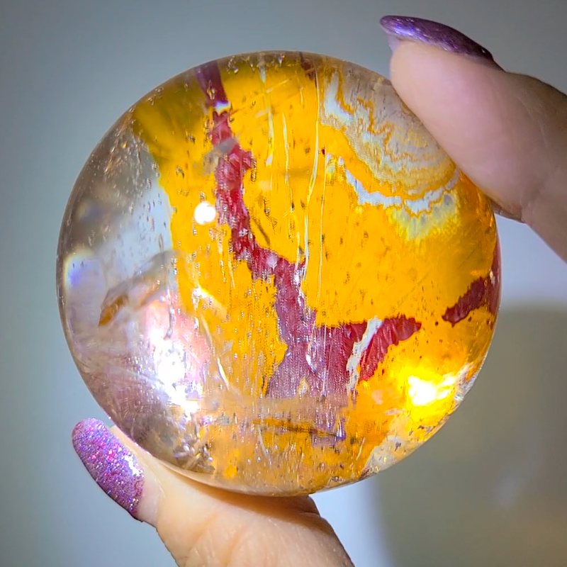 What Makes Red and Golden Yellow Hematite Inclusion Quartz Spheres Special for Vitality and Mental Strength Integration?