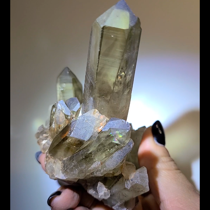 Smoky citrine cluster with great clarity, rainbows, and ascension lines. ✨ Madagascar ✨ Measurements: 112mm x 69mm x 100mm ✨ Weight: 308.7g ✨ FREE SHIPPING! Smoky citrine symbolizes abundance, manifestation, and protection. It combines the energies of smoky quartz and citrine. Smoky citrine's golden hue represents wealth, positivity, and personal power. It is believed to amplify manifestation abilities and attract prosperity into one's life. This crystal also offers protection from negative energies and promotes emotional healing. Smoky citrine encourages self-confidence, motivation, and the courage to pursue one's goals with clarity and determination. C74 #FeatherlightDustCitrine #FeatherlightDustRainbows #FeatherlightDust #citrine #citrinetower #rainbowcitrine #phantoms #phantommountains #thousandlayers #Citrinedt #phantomcitrine #smokycitrine #Madagascarcitrine #rainbowquartz #rainbowcitrine #citrineskull #pyramidphantom #citrinepoint