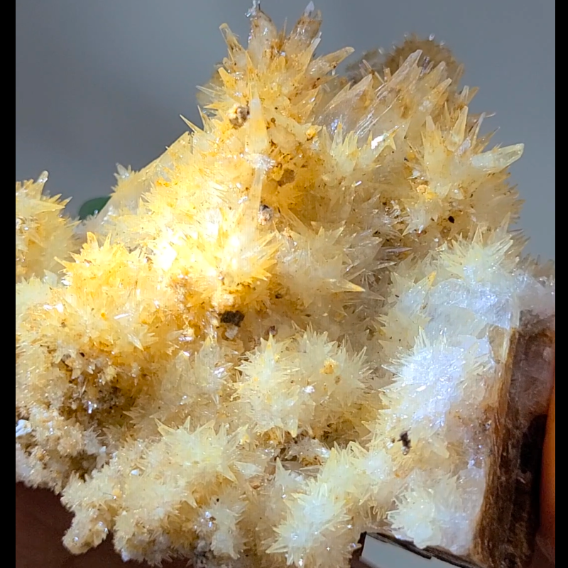 Yellow aragonite cluster with sparkly calcite growth. ✨ Origin: Yunnan, China ✨ Measurements: 65mm x 60mm x 39mm ✨ Weight: 82g ✨ FREE WORLDWIDE SHIPPING! ✈️ Yellow aragonite infuses you with warmth, joy, and confidence. This crystal stimulates the solar plexus chakra, enhancing your personal power and motivation. Yellow aragonite also promotes emotional healing and stress relief, fostering a sense of inner peace and harmony. It encourages a positive outlook and helps you manifest your goals and aspirations. Yellow aragonite is a supportive ally for embracing your inner strength and radiating positive energy. AR34 #FeatherlightDustAragonite #FeatherlightDustClusters #FeatherlightDust #aragonite #yellowaragonite #whitearagonite #bluearagonite #aragonitecluster #aragonitewithcalcite #aragonitecalcite #bluearagonitesphere #bluearagonite #bluearagonitetowers #bluearagonitespecimen #bluearagonitespray #spraycluster #bluearagonitecluster #aragonitetowers #druzyaragonite #aragonitewithdruzy