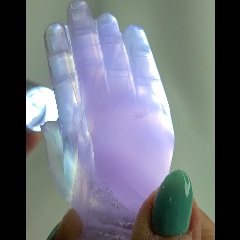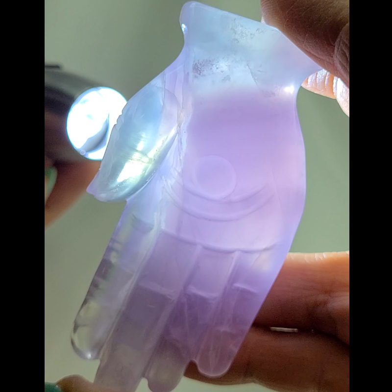 Yttrium purple fluorite carving of a hamsa - FL71 Measurements: 77mm x 40mm x 21mm Weight: 86g Yttrium purple fluorite hamsa combines the properties of both crystals, offering protection, spiritual insight, and transformation. Yttrium purple fluorite enhances your intuition and psychic abilities, helping you connect with higher realms of consciousness. Hamsas also provides energetic protection and wards off negative energies. It supports spiritual transformation and facilitates the release of old patterns, promoting personal growth and spiritual evolution. #FeatherlightDustFluorite #FeatherlightDustClusters #FeatherlightDust #fluorite #fluoritehamsa #hamsa #crystalhamsa #fluoritecube #fluoritedruzy #hamsacarving #yindumine #windowfluorite #cubefluorite #phantomfluorite #purplefluorite #bluefluorite #greenfluorite #fluoritecarving #fluoritedendrites #fluoritesphere #rainbowfluorite #dendriticfluorite #fluoriteenhydro #enhydrofluorite #phantomfluorite #fluoritewithphantom #octahedral #octahedralfluorite #yttriumfluorite #yttrium